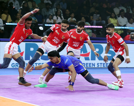 Tamil Thalaivas’ hopes of a comeback were dented when Shadloui produced a series of decisive moments — first tackling Narender Kandola to complete an ALL OUT on the Thalaivas, and then following up with a successful raid that sent Nitesh Kumar to the bench.